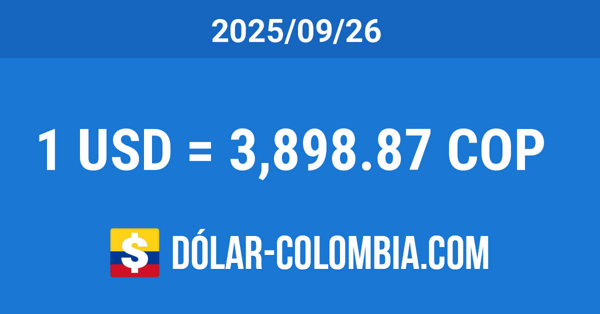 La cotización del dólar en Colombia para el día Viernes 26 de Septiembre del 2025 subió 17.61 Pesos, correspondiente a un aumento del 0.45% con respecto al día anterior. Alcanzó el nivel más alto en más de una semana (desde 2025-09-15). La TRM disminuyó un 7.01% (293.87 Pesos) en referencia al mismo día del año anterior y se redujo un 2.95% (118.57 Pesos) comparando con el mismo día del mes anterior.