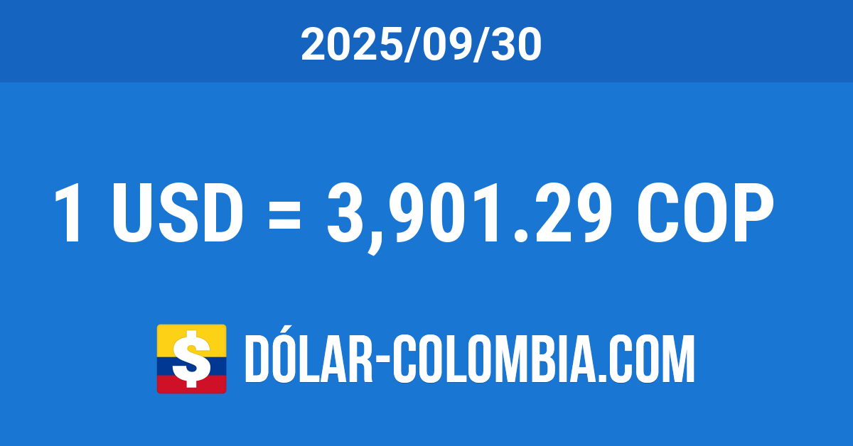 La cotización del dólar en Colombia para el día Martes 30 de Septiembre del 2025 bajó 6.83 Pesos, equivalente a un descenso del 0.17% con respecto al día anterior. La TRM disminuyó un 6.31% (262.92 Pesos) en referencia al mismo día del año anterior y se redujo un 2.91% (117.12 Pesos) comparando con el mismo día del mes anterior.