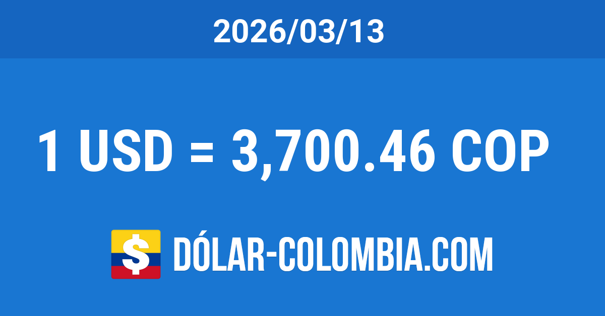 La cotización del dólar en Colombia para el día Viernes 13 de Marzo del 2026 subió 12.59 Pesos, correspondiente a un aumento del 0.34% con respecto al día anterior. La TRM disminuyó un 9.97% (409.62 Pesos) en referencia al mismo día del año anterior, pero subió un 0.95% (34.68 Pesos) comparando con el mismo día del mes anterior.
