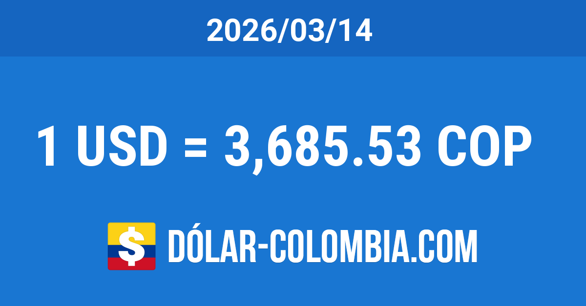 La cotización del dólar en Colombia para el día Sábado 14 de Marzo del 2026 bajó 14.93 Pesos, equivalente a un descenso del 0.4% con respecto al día anterior. Alcanzó el nivel más bajo en más de 3 semanas (desde 2026-02-19). La TRM disminuyó un 10.42% (428.65 Pesos) en referencia al mismo día del año anterior, pero subió un 0.89% (32.64 Pesos) comparando con el mismo día del mes anterior.
