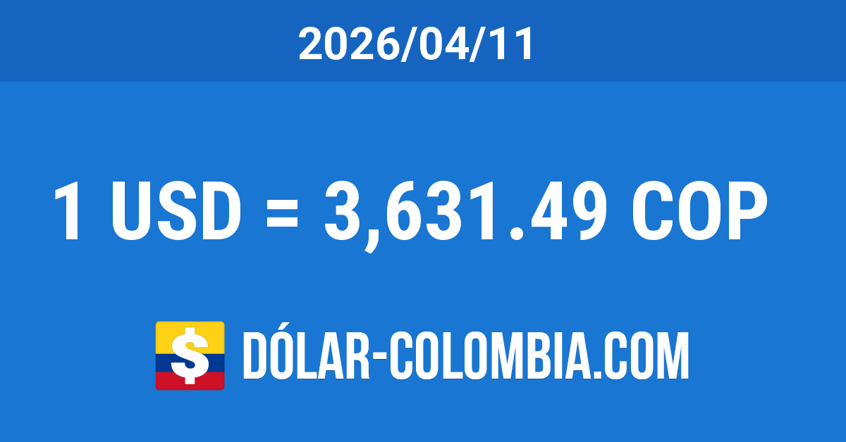 La cotización del dólar en Colombia para el día Sábado 11 de Abril del 2026 bajó 11.44 Pesos, equivalente a un descenso del 0.31% con respecto al día anterior. Alcanzó el nivel más bajo en más de 2 meses (desde 2026-02-04). La TRM disminuyó un 16.55% (720.06 Pesos) en referencia al mismo día del año anterior y se redujo un 2.13% (79.01 Pesos) comparando con el mismo día del mes anterior.