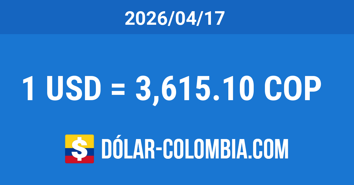 La cotización del dólar en Colombia para el día Viernes 17 de Abril del 2026 subió 11.91 Pesos, correspondiente a un aumento del 0.33% con respecto al día anterior. La TRM disminuyó un 16.06% (691.44 Pesos) en referencia al mismo día del año anterior y se redujo un 2.08% (76.8 Pesos) comparando con el mismo día del mes anterior.