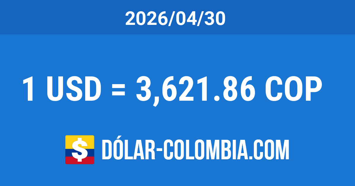 La cotización del dólar en Colombia para el día Jueves 30 de Abril del 2026 bajó 11.9 Pesos, equivalente a un descenso del 0.33% con respecto al día anterior. La TRM disminuyó un 13.74% (576.97 Pesos) en referencia al mismo día del año anterior y se redujo un 1.28% (47.03 Pesos) comparando con el mismo día del mes anterior.