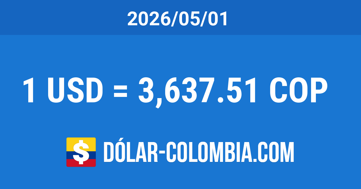 La cotización del dólar en Colombia para el día Viernes 1 de Mayo del 2026 subió 15.65 Pesos, correspondiente a un aumento del 0.43% con respecto al día anterior. Alcanzó el nivel más alto en más de 3 semanas (desde 2026-04-10). La TRM disminuyó un 13.85% (584.74 Pesos) en referencia al mismo día del año anterior y se redujo un 0.62% (22.59 Pesos) comparando con el mismo día del mes anterior.