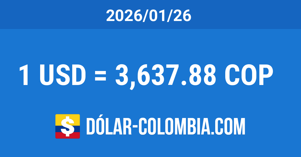 La cotización del dólar en Colombia para el día Lunes 26 de Enero del 2026 se mantuvo inalterada. La TRM disminuyó un 13.15% (550.58 Pesos) en referencia al mismo día del año anterior y se redujo un 1.86% (69.06 Pesos) comparando con el mismo día del mes anterior.