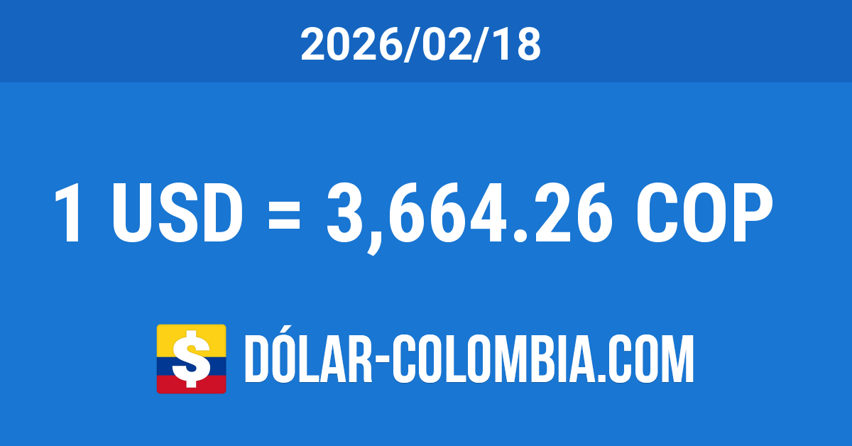 La cotización del dólar en Colombia para el día Miércoles 18 de Febrero del 2026 subió 11.37 Pesos, correspondiente a un aumento del 0.31% con respecto al día anterior. La TRM disminuyó un 10.64% (436.4 Pesos) en referencia al mismo día del año anterior y se redujo un 0.97% (35.79 Pesos) comparando con el mismo día del mes anterior.