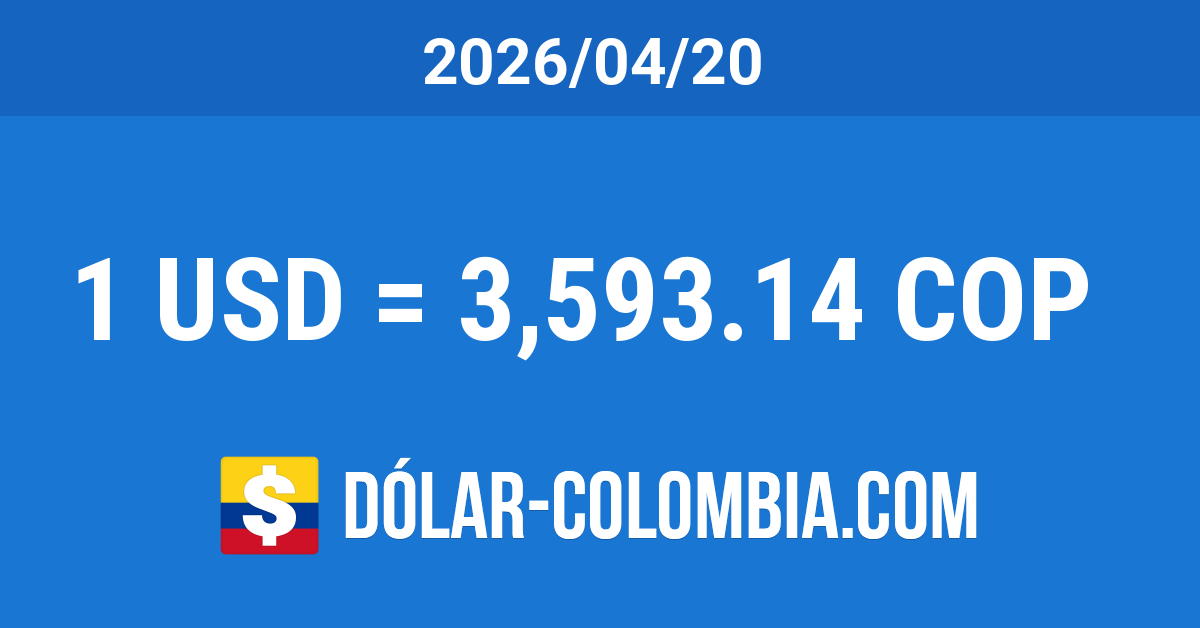 La cotización del dólar en Colombia para el día Lunes 20 de Abril del 2026 se mantuvo inalterada. La TRM disminuyó un 16.57% (713.4 Pesos) en referencia al mismo día del año anterior y se redujo un 2.69% (99.34 Pesos) comparando con el mismo día del mes anterior.